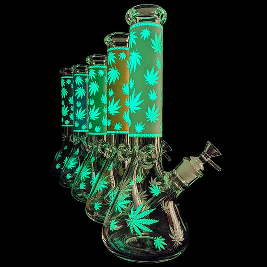 14" Glow in the Dark Leaf Decal Beaker Water Pipe
